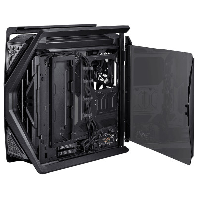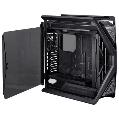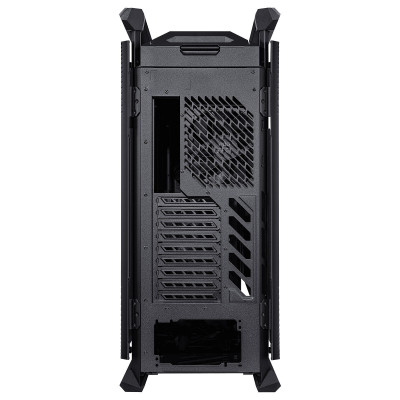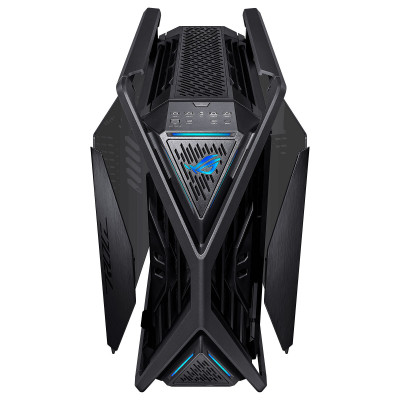 L'ASUS ROG Hyperion GR701 est un boîtier PC grand tour haut de gamme équipé du système Aura Sync RGB (façade rétro-éclairée), de 4 ventilateurs PWM de 140mm inclus dont 3 à l'avant, de panneaux latéraux en verre trempé et d'un châssis aluminium haute qualité. Il prend en charge les composants les plus performants du marché tels que les cartes graphiques jusqu'à 460 mm de longueur, les ventirads jusqu'à 190 mm de hauteur, les alimentations jusqu'à 240 mm de profondeur et les systèmes de watercooling All-In-One jusqu'à 420 mm.