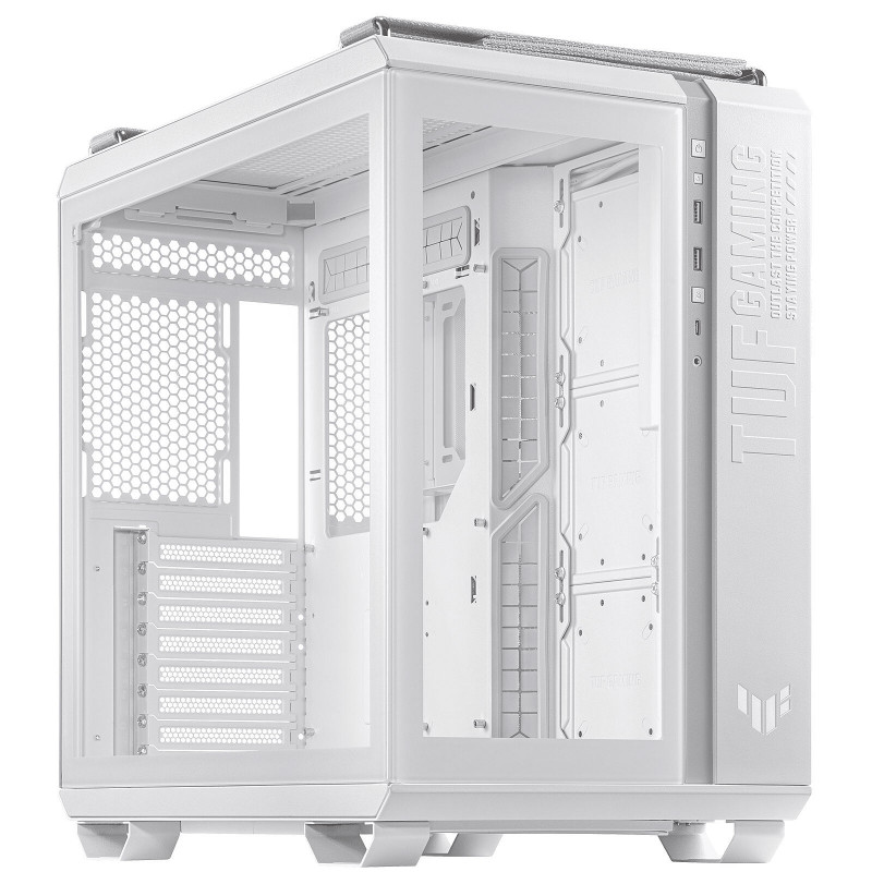 Un design superbe et de la place pour tous vos composants, voici ce que propose l'élégant et original boîtier PC ASUS TUF Gaming GT502. Sa conception à deux chambres pour le refroidissement lui confère d'excellentes performances de dissipation thermique tandis que son panneau latéral et sa façade en verre trempé vous permettront d'admirer l'intérieur de votre configuration. Compatible avec les systèmes de refroidissement AIO pour processeur les plus performants (compatible avec les radiateurs jusqu'à 360 mm) ainsi qu'avec les cartes graphiques de dernière génération (jusqu'à 400 mm de longueur), l'ASUS TUF Gaming GT502 vous permettra de concevoir un PC gaming puissant et efficace.