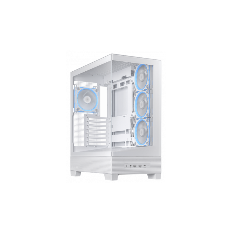 Moyen tour - E-ATX - ATX - MATX - MITX - USB 3.0 - Emplacements 2,5" : 4 - Emplacements pour ventilateurs additionnels : 7 - 3 ventilateurs inclus - Verre Trempe - RGB - Sans Alim - Blanc