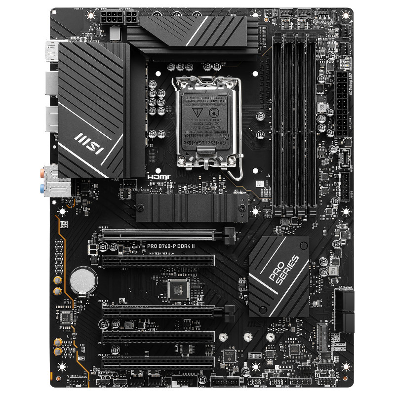 La carte mère MSI PRO B760-P DDR4 II conçue pour les processeurs Intel Core hybrides de 12ème, 13ème et 14ème génération est idéale pour l'assemblage d'une configuration puissante au coût maitrisé. Elle prend en charge les processeurs Intel Core 12ème, 13ème et 14ème génération, les cartes graphiques PCI-Express 4.0 16x, les SSD M.2 PCIe 4.0, la RAM DDR4 ainsi que les périphériques USB 3.1.