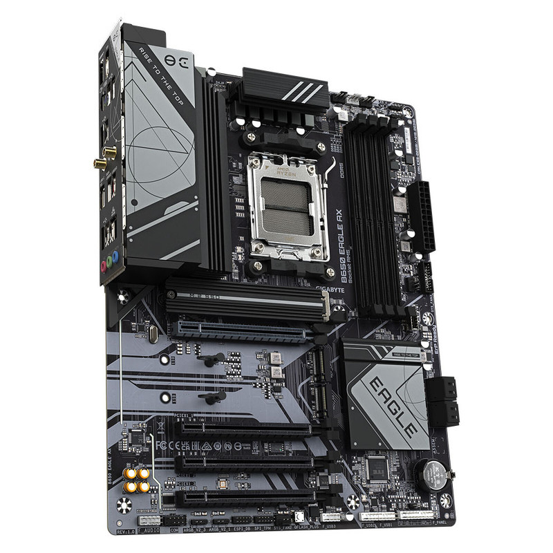 La carte mère Gigabyte B650 EAGLE AX est idéale pour poser les bases d'une configuration gaming de pointe. Elle est conçue pour épauler un processeur AMD Ryzen 7000 sur socket AMD AM5. Elle permet de prendre en charge la DDR5, les cartes graphiques à la norme PCI-Express 4.0 et les SSD à la norme 4.0. Elle embarque une connectivité complète avec du réseau LAN 2.5 GbE, Wi-Fi 6E et du Bluetooth 5.2 ainsi que de l'USB 3.1 & 3.2.