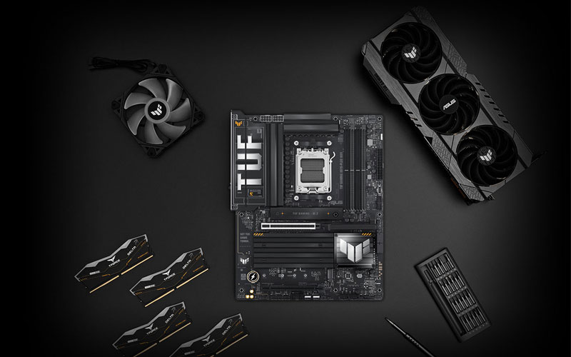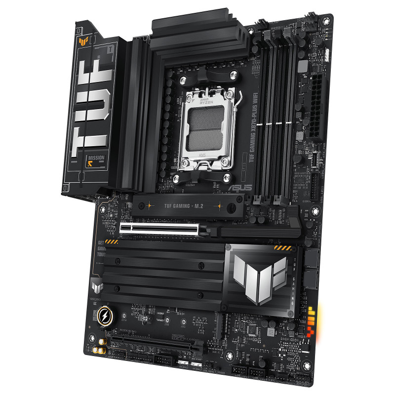 La carte mère TUF GAMING X870-PLUS WIFI d'ASUS prend en charge la DDR5, le PCI-Express 5.0 tant pour la carte graphique que les SSD M.2 NVMe, propose la technologie Wi-Fi 7 pour des vitesses sans fil allant jusqu’à 6.5 Gbps, un port LAN 2.5GbE et, 2 ports USB4 (40 Gbps) Type-C.