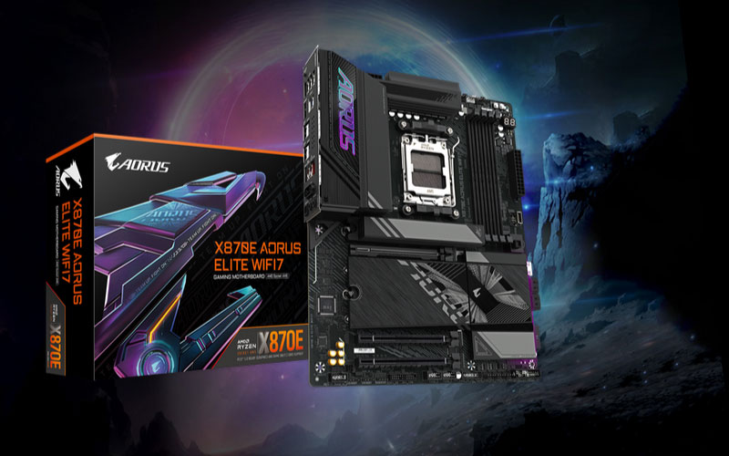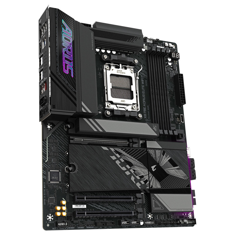 La carte mère Gigabyte X870E AORUS ELITE WIFI7 embarque le chipset AMD X870E ce qui la rend idéale pour poser les bases d'une configuration gaming hautes performances. Son socket AMD AM5 lui permet de prendre en charge un processeur AMD Ryzen 7000/8000/9000. Elle est dotée de 4 emplacements DDR5, peut exploiter les cartes graphiques et les SSD M.2 NVMe à la norme PCI Express 5.0 pour des performances décoiffantes. Elle est dotée d'une connectivité complète avec du réseau LAN 2.5 GbE, Wi-Fi 7 et du Bluetooth 5.4 ainsi que de l'USB 3.2 et 4.0.