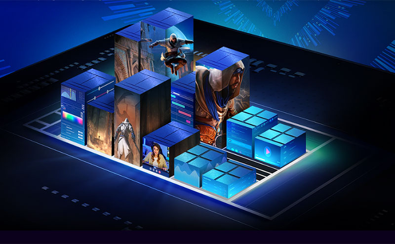 L'architecture hybride hautes performances d'Intel est conçue pour les besoins des gamers modernes. Des e-cores supplémentaires vous offrent des performances améliorées pour pouvoir faire du multitâche. Jouez, partagez et bénéficiez d'une créativité libérée. Intel Thread Director vous permet de jouer sans interruption : ne vous souciez plus des tâches d'arrière-plan qui vous ralentissent. Optimisez les charges de travail entre votre processeur Intel Core et votre GPU en allouant de la puissance là où elle est la plus nécessaire grâce à Dynamic Power Share.