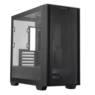 L'ASUS Prime A21 est un boîtier MicroATX élégant de 43 litres, doté de panneaux latéraux sans outils et d'un maillage quasi-filtrant, qui prend en charge les refroidisseurs de 360 mm, les cartes graphiques d'une longueur maximale de 380 mm et les alimentations ATX standard.