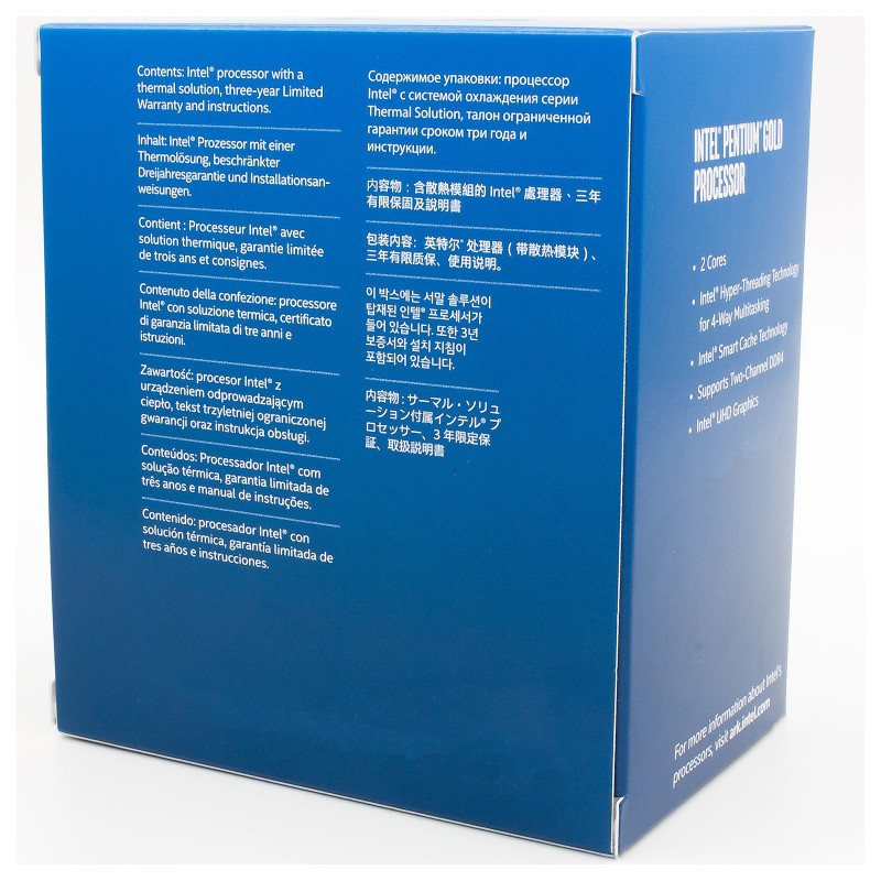 Les processeurs Intel Pentium Comet Lake-S sont conçus pour l'informatique du quotidien. Simples et efficaces, ils s'appuient sur une fréquence native élevée, 2 Cores physiques et 4 Cores logiques, 4 Mo de mémoire cache L3 et un contrôleur graphique Intel UHD Graphics 610.