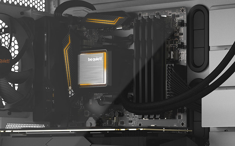 Les LED ARGB offrent de très nombreuses couleurs ainsi que différents modes pour personnaliser le look du Silent Loop 2 360mm. L'éclairage peut être synchronisé avec les réglages ARGB de la carte mère. Vous pouvez aussi utiliser la télécommande ARGB filaire pour passer d'un mode ou d'une couleur à l'autre. L'éclairage blanc du logo be quiet! peut être activé et désactivé pour créer l’aspect extérieur de votre choix.