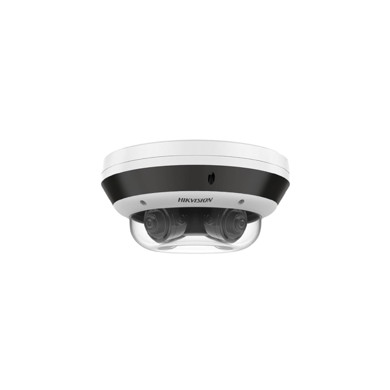 Multicapteurs IP blanc multicapteurs à couverture 360° - 4x5 MP - VF motorisée 2.8-8mm - IR 30M - WDR 120 dB - IA Protection périmétrique - Entrée et sortie audio - 12V - POE